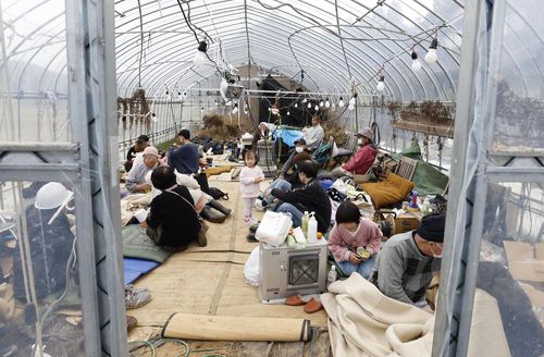 일본 노토강진후 비닐하우스에 모여 생활 중인 피난민들 |
