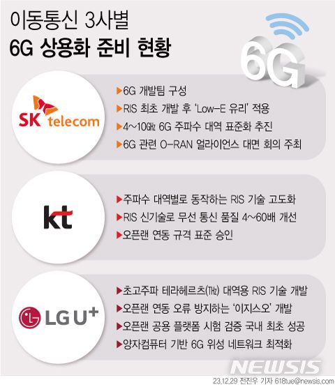 SK텔레콤, KT, LG유플러스 등 통신 3사는 RIS(재구성 가능 지능형표면), 오픈랜(개방형 무선 접속망) 등 필수기술 연구에 매진한 결과,이미 일부 기술 개발에서 성과를 내고 있다.