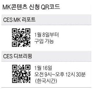 CES 2024 디브리핑 라이브 세미나 참가자에겐 CES 2024 MK 리포트가 무료로 제공된다. 디브리핑과 MK 리포트 구입은 이벤터스(event-us.kr) 홈페이지에 접속해 '매일경제 CES 2024 디브리핑 라이브 세미나'를 검색하면 된다.
