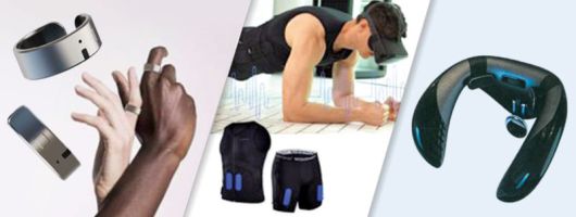 CES 2024 혁신상을 받은 브이터치 웨어러블 음성입력 반지, 웨이브컴퍼니 스마트 테크 슈트 및 메타버스 헬스케어 플랫폼, 더투에이치 퍼스널스페이스(왼쪽부터) 과기정통부 제공 |