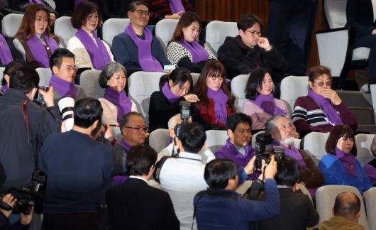 이태원 참사 유가족들이 9일 오후 국회에서 열린 본회의에서 이태원 참사 특별법 수정안에 대한 이만희 국민의힘 의원 반대토론이 이어지자 슬퍼하고 있다. 뉴시스 |