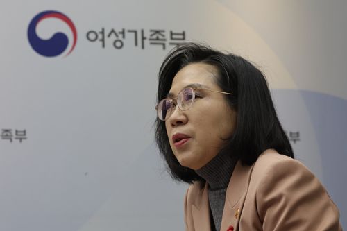 연합뉴스와 인터뷰하는 김현숙 여가부 장관 |