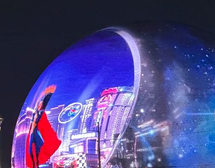 스피어는 지난해 9월 라스베이거스에 들어선 세계 최대 규모의 원형 공연장이다. 공연장 안팎에 모두 발광다이오드(LED) 스크린이 설치됐고 규모는 높이 111.6m, 바닥 지름 157.3m에 이른다. LED 스크린 면적은 5만 3884㎡로 축구장 6개와 맞먹는다.