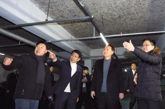 윤석열 대통령이 10일 경기 고양시 일산동구 백송마을 5단지를 방문해 박상우 국토교통부 장관, 입주자 대표, 재건축추진준비위원회 대표 등 주민들과 함께 아파트 지하주차장을 점검하고 있다. [뉴시스] |