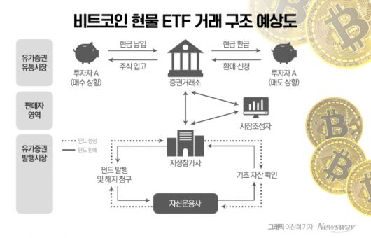 비트코인 현물 ETF는 비트코인 현물 시세 등락에 연동해 가격이 변하는 금융투자 상품이다. 쉽게 말해 비트코인 가격이 변동하면 ETF 가격도 변동하는 형태다.