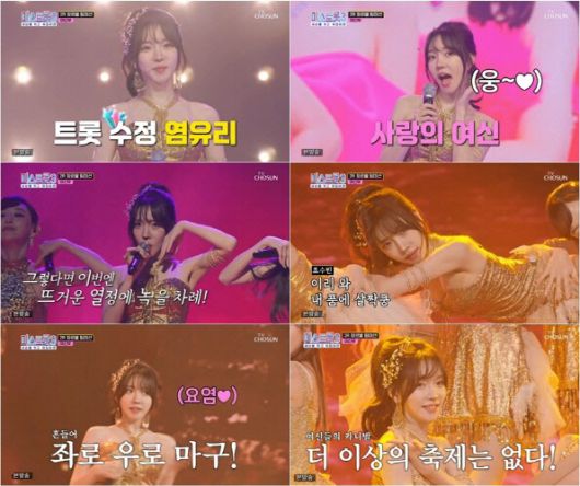 1라운드에서 마스터 김연자에게 ‘발성 천재’라는 칭찬을 받았던 염유리의 활약은 팀 미션에서도 이어졌다.