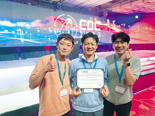 국제 자율주행제어 챌린지 시상식에서 은상을 수상한 한국전자통신연구원(ETRI) 연구팀. 왼쪽부터 강동엽 책임연구원·최정현 선임연구원·진용식 연구원 [ETRI 제공] |