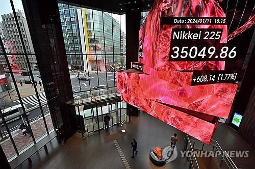 (도쿄=연합뉴스) 박성진 특파원 = 새해 들어 일본 주가가 연일 상승하면서 도쿄증권거래소 상장 주식의 시가 총액이 3년 반 만에 아시아 1위에 복귀했다고 니혼게이자이신문(닛케이)이 12일 보도했다.