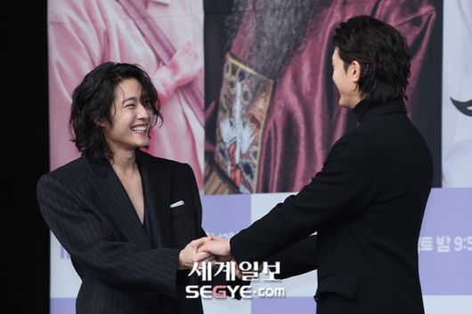 배우 이종원(사진 왼쪽)과 이기우가 12일 오후 서울 마포구 상암동 MBC 사옥에서 진행된 새 금토드라마 '밤에 피는 꽃'의 제작발표회에 참석해 포즈를 취하고 있다.