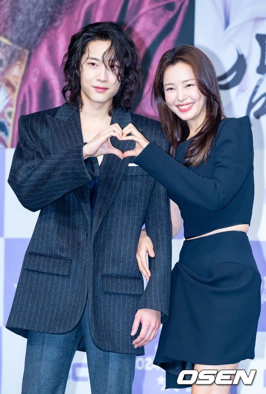 [OSEN=민경훈 기자] 12일 오후 서울 마포구 상암 MBC 골든마우스홀에서 MBC 새 금토드라마 '밤에 피는 꽃' 제작발표회가 열렸다. 배우 이종원과 이하늬가 커플 포즈를 취하고 있다. 2024.01.12 / rumi@osen.co.kr