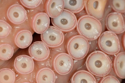 오밀조밀하게 붙어 있는 개구리알, 바질씨앗이 한 움큼 담긴 주스, 피지가 알알이 박힌 모공 사진, 연근의 단면, 문어 빨판…