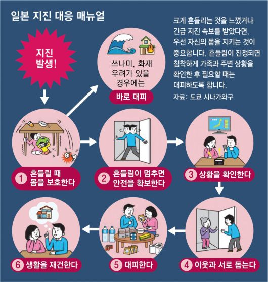 일본에서는 큰 재해를 겪고 나면 어김없이 법 규정을 새로 만들거나 고친다. ‘소 잃고 외양간 고친다’는 비판도 나오지만, 같은 실수를 두 번 반복하면 안 된다는 경각심이 더 크기 때문이다. 정상만 한국재난안전기술원 원장은 “일본은 재난이 있을 때마다 대응 체계를 만들어 왔고 예방과 대비에 초점을 맞춘다”며 “뒷북 대응이라는 평가도 있지만 지진이 일어나고 총리의 대응 지시가 나오는 데 불과 15분이 걸린 건 높이 평가할 부분”이라고 말했다.