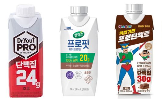 편의점 각 사의 판매량 1위를 단백질 음료를 살펴보면 CU는 PB(Private Brand) 제품인 ‘짱구 액션가면 프로틴 초코맛’(330㎖, 3000원)이, GS25와 세븐일레븐은 매일 유업의 ‘셀렉스 프로핏 웨이프로틴 초코’(330㎖, 3000원)이, 이마트24는 오리온의 닥터유PRO단백질초코(250㎖, 2900원)이 차지했다.