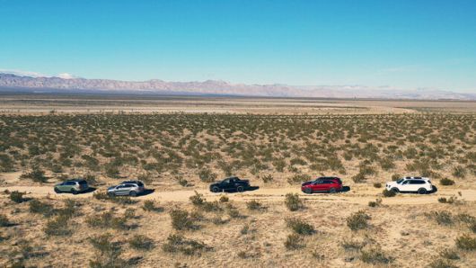 11일(현지시각) 오후 미국 캘리포니아 모하비시험주행장을 달리고 있는 시험용 차량들. 현대차·기아 제공 |