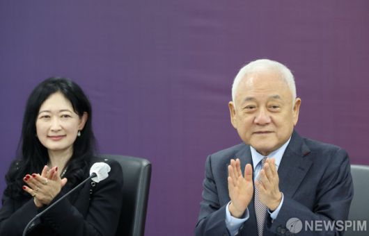 [서울=뉴스핌] 김학선 기자 = 김한길 국민통합위원장과 이우영 특위 위원장이 3일 정부서울청사에서 열린 이주민 자치참여 제고 특별위원회 출범식에서 박수치고 있다. 국민통합위는 다문화·이주민 국가로의 전환과정에서 발생할 수 있는 문제점을 미리 살펴보고, 이주민 유입 시대를 대비하고자 특별위원회를 출범했다. 2023.11.03 yooksa@newspim.com |