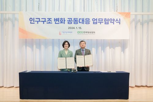 ▲ 대통령 직속 저출산고령사회위원회와 한국방송협회는 15일 인구구조 변화에 공동 대응하고자 업무협약(MOU)을 했다. 이번 협약은 사회에 퍼진 결혼과 출산에 대한 부정적인 인식을 개선하기 위한 것으로, 양측은 출산과 양육의 가치를 알리고 사회와 청년 세대에 유익한 콘텐츠를 제작하는 데 협력할 예정이다. (서울=연합뉴스)