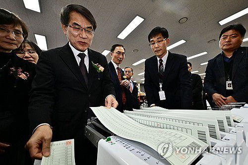 개표 기계 살펴보는 노태악 중앙선관위원장 |