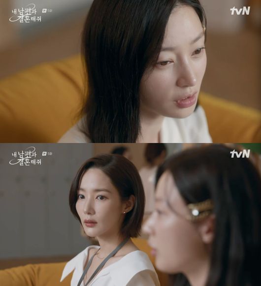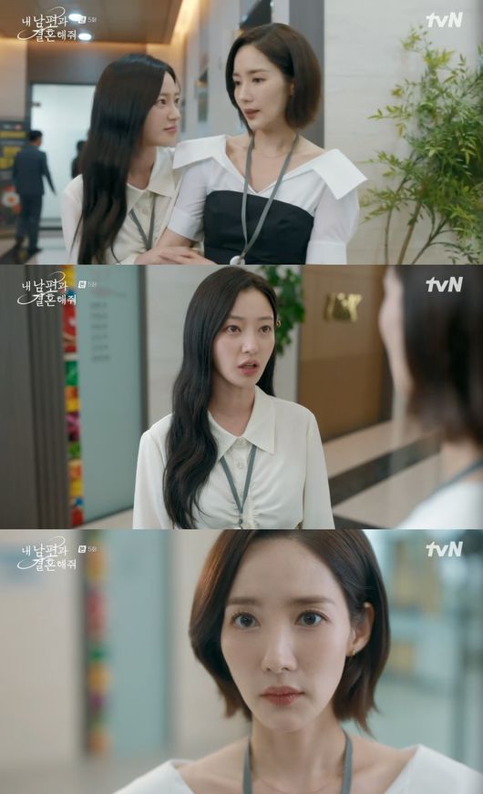 15일 방송된 tvN '내 남편과 결혼해줘' 5화에서는 직원들 앞에서 강지원(박민영 분)의 험담을 하는 정수민(송하윤 분)의 모습이 그려졌다.
