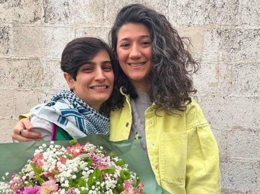 14일(현지시간) 보석으로 풀려난 엘라헤흐 모함마디(왼쪽)과 닐루파르 하메디. X 캡처 |