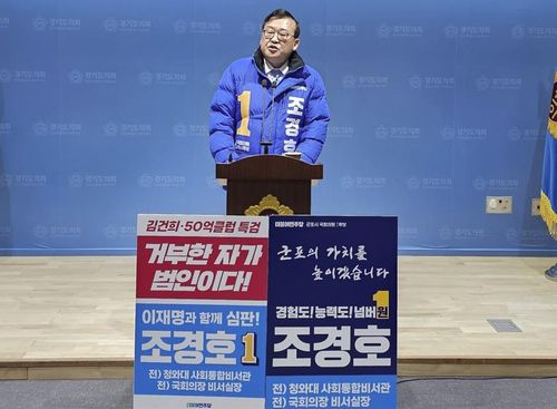 (수원=연합뉴스) 최찬흥 기자 = 조경호(더불어민주당) 전 청와대 사회통합비서관은 16일 경기도의회 브리핑룸에서 기자회견을 열어 4·10 총선 군포 출마를 선언했다.