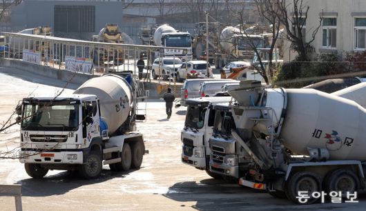 지역마다 레미콘 회사와 건설사 간 레미콘 가격 인상 협상이 벌어지면서 공사비 상승 우려가 커지고 있다. 15일 오전 서울 강남구 세곡동 한 레미콘 공장에 트럭들이 오가고 있다. 양회성 기자 yohan@donga.com |
