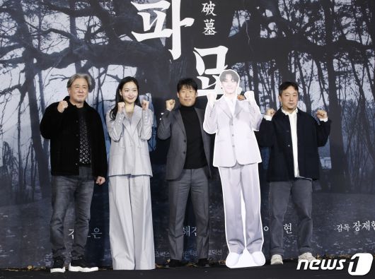 배우 최민식(왼쪽부터)과 김고은, 유해진, 장재현 감독이 17일 서울 중구 더 플라자 호텔 서울에서 열린 영화 '파묘‘(감독 장재현) 제작보고회에서 포즈를 취하고 있다. '파묘'는 거액의 돈을 받고 수상한 묘를 이장한 풍수사와 장의사, 무속인들에게 벌어지는 기이한 사건을 담은 오컬트 미스터리 영화다. 2024.1.17/뉴스1 ⓒ News1 권현진 기자 |