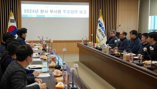 [서울=뉴시스] 코레일유통은 실무자가 대표이사에게 직접 발표하는 본사 신년 업무보고회를 진행하고 있다. 2024.01.18. (사진=코레일유통 제공) photo@newsis.com *재판매 및 DB 금지 |