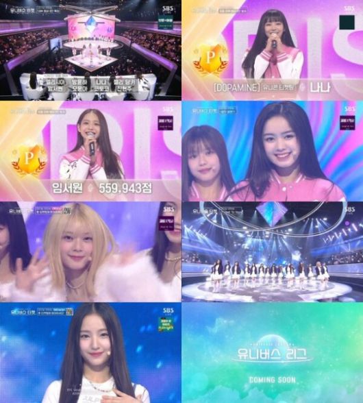 SBS 첫 아이돌 그룹 유니스(UNIS)가 탄생했다. 전 세계를 상대로 꿈을 펼칠 ‘유니버스 티켓’ 최종 멤버로 엘리시아(필리핀), 방윤하(한국), 나나(일본), 젤리 당카(필리핀), 임서원(한국), 오윤아(한국), 코토코(일본), 진현주(한국)가 발탁됐다.