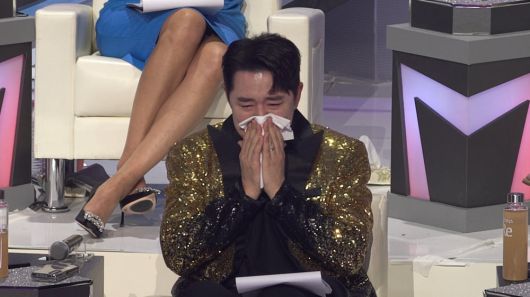 관록의 MC 김성주마저 붐의 오열에 함께 울었다. 김성주는 "마스터가 너무 울어서 마음이 아팠습니다"라고 전하며 가슴을 먹먹하게 했다. MC와 마스터 군단이 눈물바다가 되며 녹화가 잠시 중단될 정도였다고. 겨우 감정을 추스른 붐이 눈물을 쏟은 안타까운 이유를 설명하며 한 번 더 눈물샘을 자극했다.