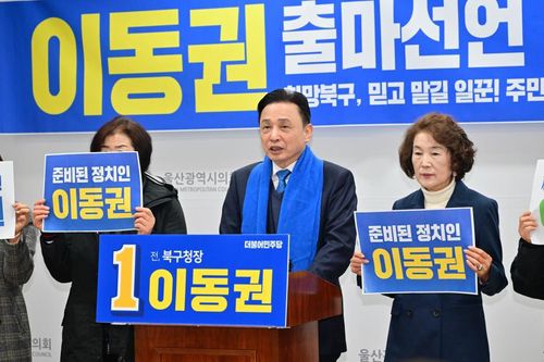 (울산=연합뉴스) 허광무 기자 = 이동권 전 울산 북구청장이 22대 총선에서 더불어민주당 후보로 울산 북구에 출마하겠다고 선언했다.