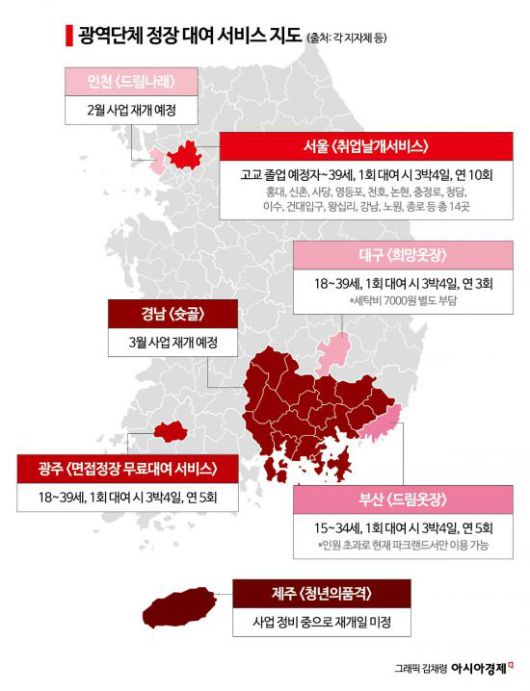 타지역도 구직자를 위한 정장 대여 서비스를 제공한다. 대부분 지자체가 18세~39세 지역 거주 청년을 대여 대상으로 하지만, 지자체마다 지원 대상 연령이나 대여 기간·횟수가 달라 유의해야 한다.