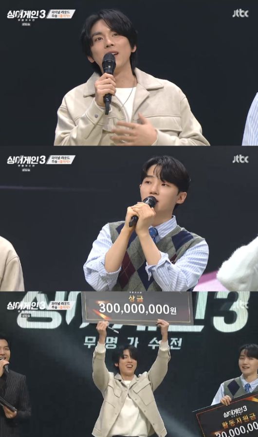 이날 '싱어게인3'에서는 홍이삭이 2939.19점을 얻어 소수빈을 누르고 최종 우승을 차지했다. 이에 홍이삭은 우승 상금 3억 원을 거머쥐게 됐다. 소수빈은 총 1983.36점을 기록했다.