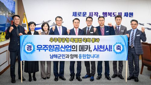 장 군수는 "우주항공청 설립이 교육, 산업, 경제 등 여러 방면에서 선순환 구조로 정착될 수 있도록 적극적으로 힘을 모으겠다"고 밝혔다. (남해=연합뉴스)