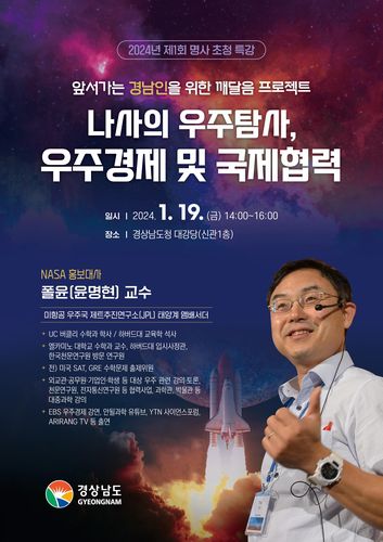 경남도는 오는 5월 사천시에 우주항공청 개청을 앞두고 우주산업 육성 의지를 알리고 더 많은 시민이 우주에 관심을 갖도록 하고자 폴윤 미국 항공우주국(NASA) 제트추진연구소 앰배서더를 초청했다.