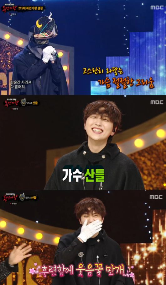 [조이뉴스24 이미영 기자] '복면가왕' 3연속 가왕 '인센스'의 정체는 B1A4 산들이었다. 산들은 가왕전 왕좌를 내줬지만, 부드러운 음색과 뛰어난 가창력으로 존재감을 발산했다.
