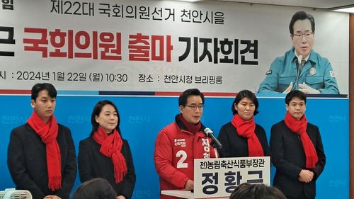(천안=연합뉴스) 유의주 기자 = 정황근 전 농림축산식품부 장관이 22일 4월 총선에 충남 천안을 선거구에서 국민의힘 후보로 출마하겠다고 선언했다.