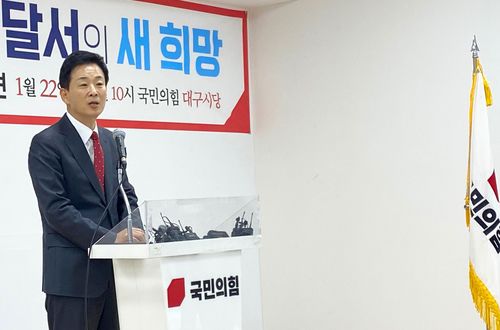 (대구=연합뉴스) 박세진 기자 = 박근혜 전 대통령의 측근으로 알려진 유영하 변호사가 22일 국민의힘 대구시당에서 기자회견을 열고 오는 4월 22대 총선에서 대구 달서갑에 출마하겠다고 선언했다.