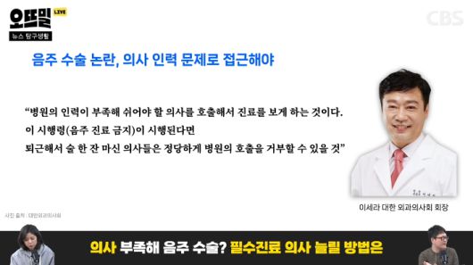 ◇ 채선아> 의사 수가 부족하니까 술을 마신 의사가 와서 수술하는 상황이 있을 수 있다?