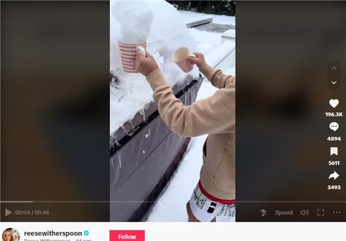 22일(현지시간) 미 일간 워싱턴포스트(WP)에 따르면 위더스푼은 최근 자신의 틱톡(TikTok) 계정에 '눈 오는 날은 초코치노를 먹는 날'이라는 제목의 영상을 올렸다.
