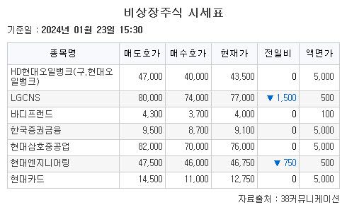 23일 38커뮤니케이션에 따르면 비상장 주식 시장은 2거래일 연속 약세 마감했다.