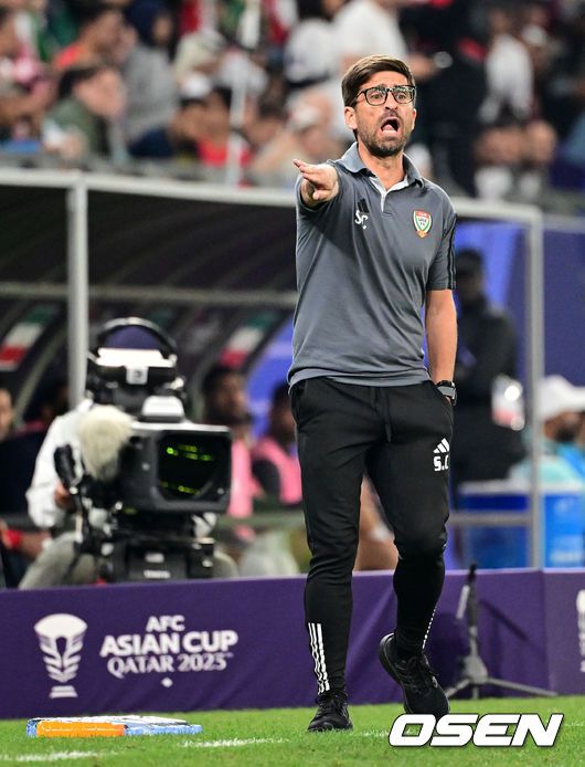 [OSEN=알 라이얀(카타르), 지형준 기자] 23일 오후 카타르 알 라이얀 에듀케이션 시티 스타디움에서 2023 아시아축구연맹(AFC) 아시안컵 C조 3차전 아랍에미리트와 이란의 경기가 열렸다. 지난 팔레스타인전에서 심판에게 항의하다가 경고 누적으로 퇴장당한 아랍에미리트 파울루 벤투 감독을 대신해 세르지우 코스타 수석코치가 지휘하고 있다. 2024.01.23 / jpnews.osen.co.kr