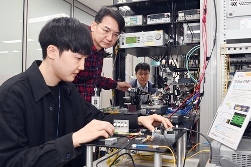 (대전=연합뉴스) 정찬욱 기자 = 한국전자통신연구원(ETRI)이 초대형 데이터센터, 5세대(5G)·6세대(6G) 이동통신 기지국 등에 쓰일 수 있는 광원 소자를 세계 최초로 개발했다.