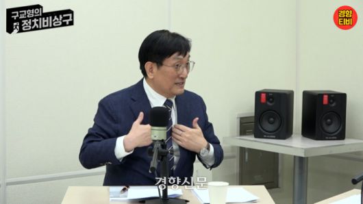 노영민 전 문재인 정부 대통령 비서실장이 24일 유튜브 시사 라이브 채널 <경향티비> ‘구교형의 정치 비상구’에 출연해 발언하고 있다. |
