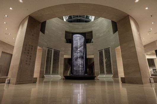 국립중앙박물관이 동아시아 최대 비석인 광개토대왕릉비를 디지털로 재현(사진)해 24일 공개했다. 높이 7.5m, 너비 2.6m의 발광다이오드(LED) 기둥에 사진과 영상으로 비석을 구현했다.