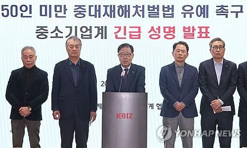 앞서 중소기업중앙회, 대한전문건설협회 등 10여개 중소기업 단체로 이뤄진 중소기업단체협의회도 지난 23일 긴급 기자회견을 열어 "이대로 중대재해처벌법이 시행되면 준비가 덜 된 중소기업들의 폐업이 속출하고 근로자들은 일자리를 상실하게 될 것"이라며 법 적용 유예를 촉구했다.