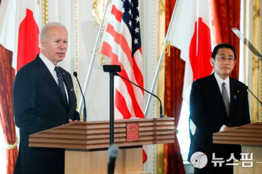조 바이든 미국 대통령(좌)이 기시다 후미오 일본 총리와 회담 후 공동 기자회견을 하고 있다. 2022.05.23 [사진=로이터 뉴스핌] |