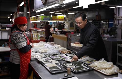 설 명절 주요 성수품에 대해 물가동향 파악을 하는 이형일 통계청장(오른쪽) [통계청 제공. 재판매 및 DB금지] |