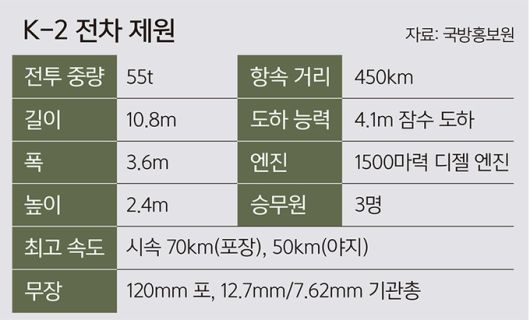 창원공장 내 시험장에선 K-2 전차의 주행 시험이 진행 중이었다. 시험장 한쪽 끝에 서 있던 K-2 전차가 현대로템 관계자의 신호에 움직이기 시작했다. 중량이 55t에 달하는 육중한 차체임에도 시속 70㎞의 빠른 속도로 기자의 눈앞을 쏜살같이 지나갔다. 육안으로 보기만 해도 아찔한 수준인 60도 경사면도 거침없이 올라갔다.