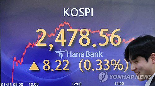 28일 연합인포맥스에 따르면 코스피는 지난 26일 2,478.56으로 1주일 전인 지난 19일(2,472.74)보다 0.23% 올랐다.