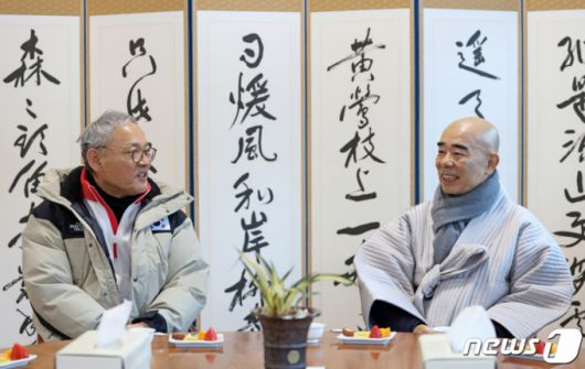 (서울=뉴스1) 신웅수 기자 = 유인촌 문화체육관광부 장관이 26일 강원도 평창 오대산 월정사를 방문해 월정사 주지 퇴우 정념 스님과 면담하고 있다. (문체부 제공) 2024.1.26/뉴스1 Copyright (C) 뉴스1. All rights reserved. 무단 전재 및 재배포, AI학습 이용 금지. |